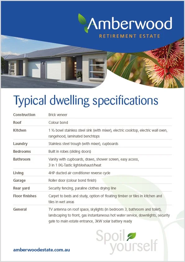 Floor finishes: Carpet to beds and study, option of floating timber or tiles in kitchen and tiles in wet areas